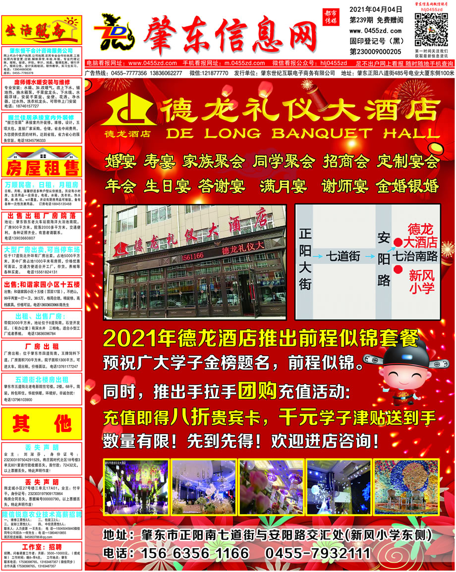 肇東信息網DM報紙2021年4月4日第239期