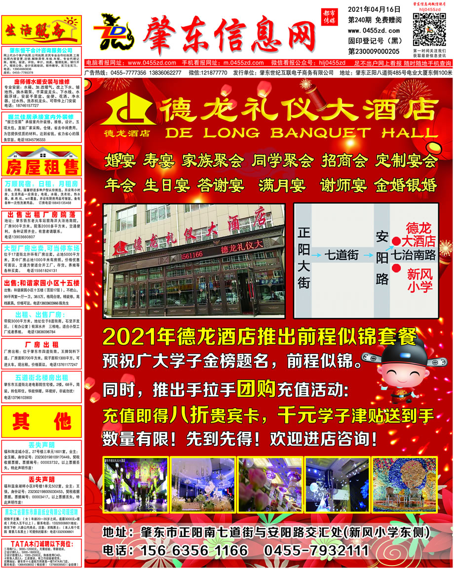 肇東信息網DM報紙2021年4月16日第240期