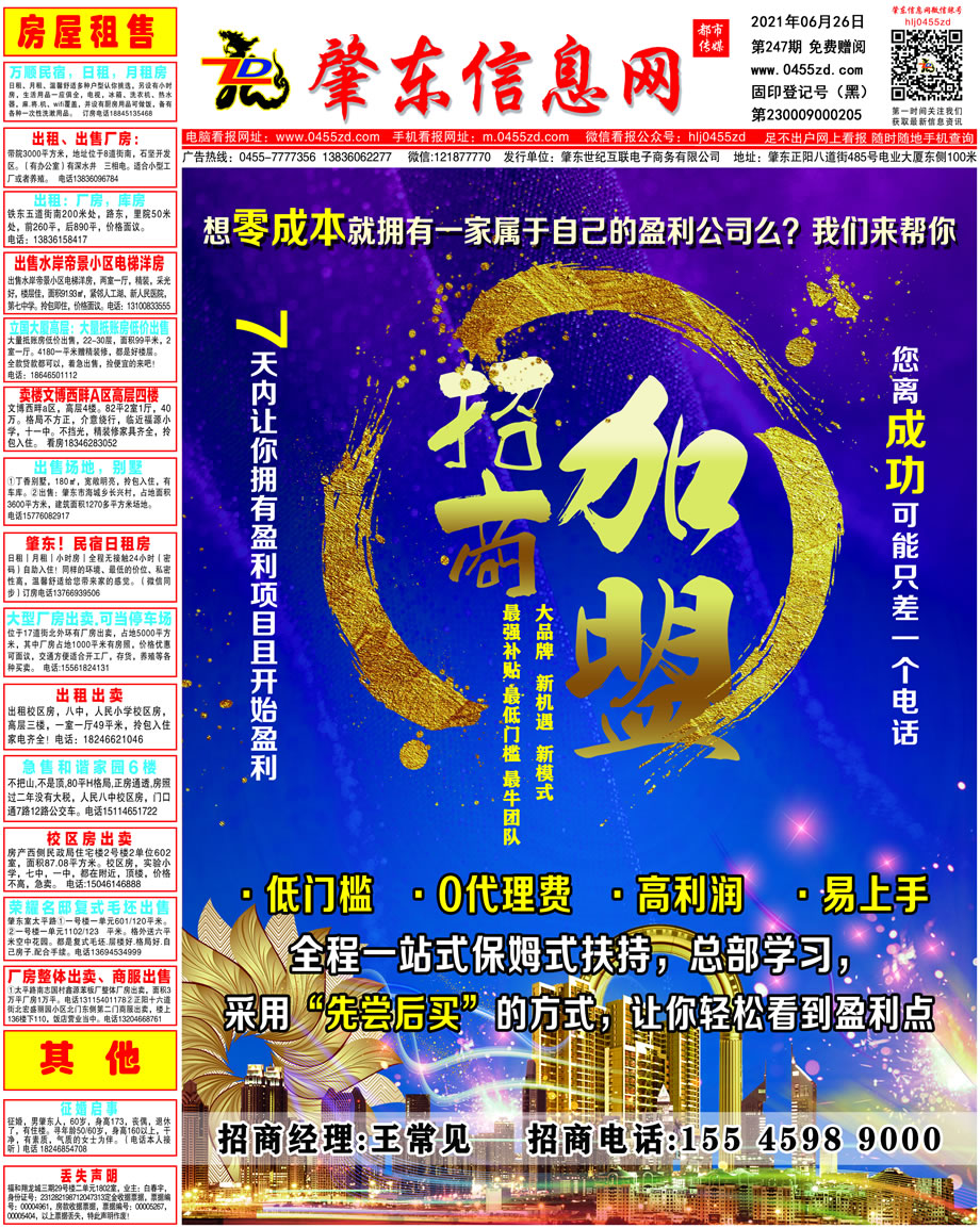 肇東信息網DM報紙2021年6月26日第247期