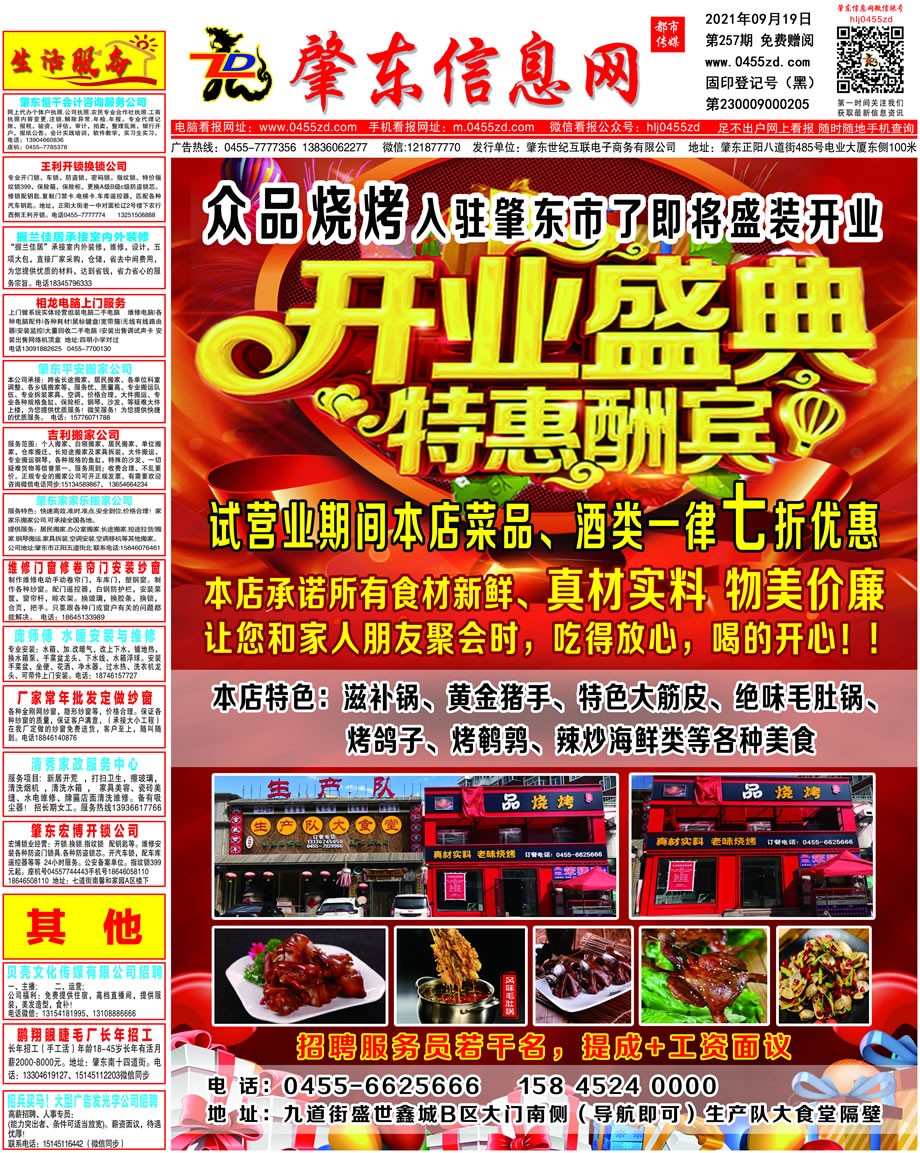 肇東信息網DM報紙2021年9月19日第257期