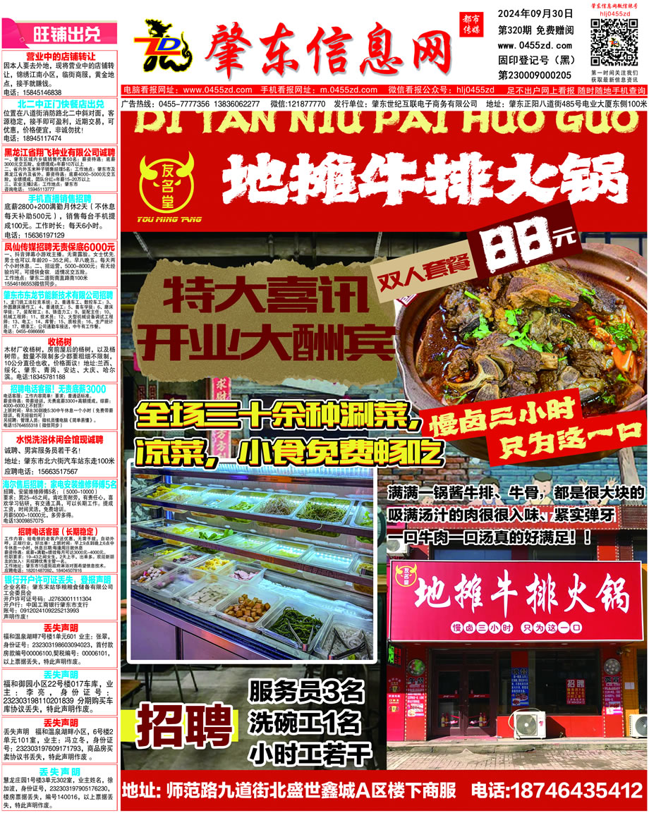 肇東信息網(wǎng)DM報(bào)紙2024年9月30日第320期