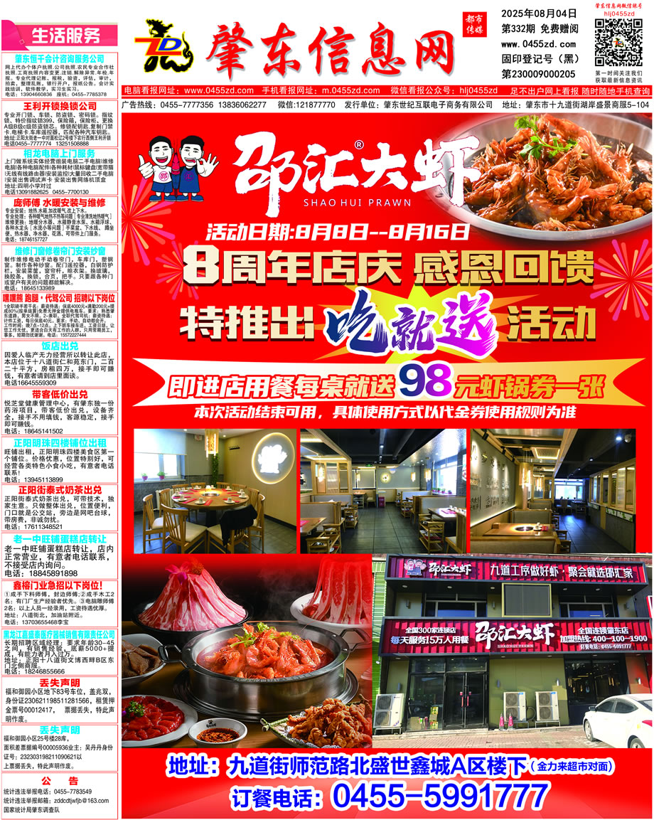 肇東信息網(wǎng)DM報(bào)紙2025年8月4日第332期