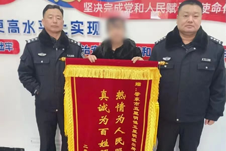 | “真的太感謝你們啦,這么快就找到了丟失的手提包,不然我都不知道該怎么辦呢!”近日,田女士將一面印著“盡職盡責(zé)好警察、機(jī)智破案顯神威”的錦旗送到肇東市公安局西城派... |