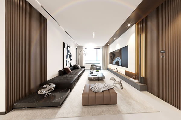 格林城市印象・現代黑白灰:全屋木飾面墻板、子午灰配色、打造寬敞大氣明亮