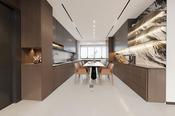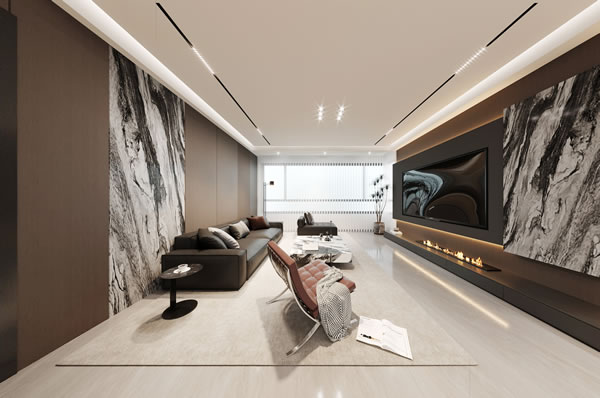 格林城市印象・意式極簡風:全屋木紋墻板、巖板奢石配色