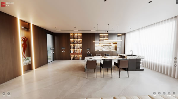 觀瀾城・金領域・現代輕奢風:開放式布局、無主燈設計、木飾面背景墻,巖板酒柜彰顯高端質感