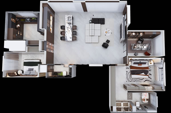 3D 全景效果圖 + 施工圖,1:1 還原設計效果,所見即所得