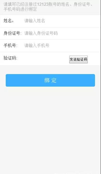 如沒有綁定直接跳轉(zhuǎn)到綁定頁面,輸入相關(guān)信息進(jìn)行綁定即可,沒有12123用戶直接注冊。