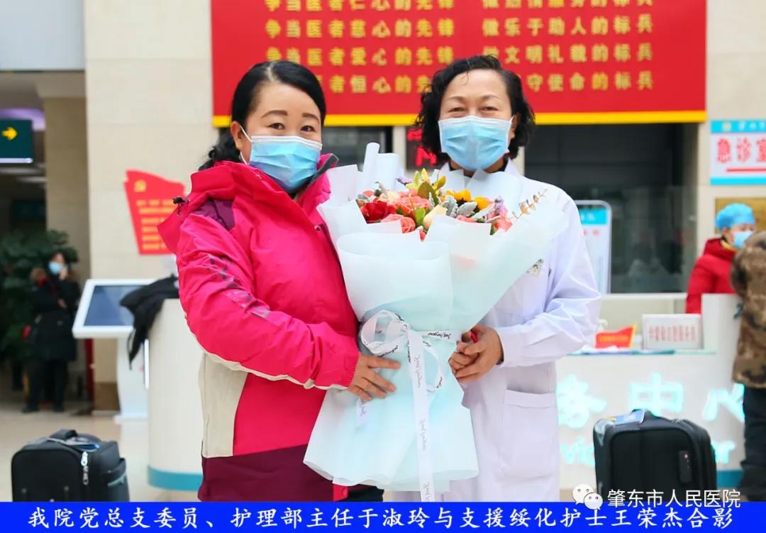 此次趕赴綏化,是我院繼趙志剛、溫明馳援湖北,欒宏偉、趙虹琪、劉文宇支援綏化后的再次出征。出發(fā)前,我院在門診大廳舉行了短暫而又莊重的歡送儀式。沒有太多的祝福和掌聲,一切都太過匆匆,大家都太過忙碌,全院醫(yī)務(wù)工作者都各自奮戰(zhàn)在如火如荼的全民抗疫工作當(dāng)中,人民醫(yī)院黨總支書記、院長李吉順,黨總支委員、護(hù)理部主任于淑玲代表全院職工向三名護(hù)理工作者送去鮮花和祝福,希望她們此次出征能夠不負(fù)使命、不負(fù)重托,充分發(fā)揚(yáng)崇高的職業(yè)精神,在工作當(dāng)中服從指揮、服從大局,忠于職守、相互配合,同時(shí)也要注意防寒保暖,做好個(gè)人防護(hù)。并祝愿她們能夠光榮出征,平安履職,勝利凱旋。