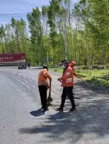 為切實(shí)履行公路保護(hù)職責(zé),養(yǎng)護(hù)人員第一時(shí)間趕赴現(xiàn)場,規(guī)范設(shè)置警示標(biāo)識后,將石子堆積裝運(yùn),清掃干凈后,恢復(fù)車輛正常通行。