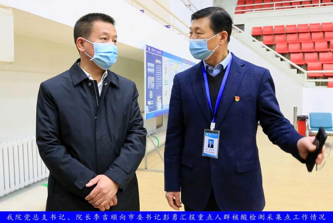 為進一步加強新冠肺炎疫情防控工作,切實保障人民群眾的身體健康和生命安全。2021年12月15日,肇東市市委書記彭勇,市委副書記、市長呂江,市委常委、組織部部長周海波,市委常委、政法委書記田宇,市政府副市長張桂榮,市政府副市長、公安局黨委書記、局長張國輝等一行蒞臨我院對疫情防控及重點人群核酸檢測工作進行現場調研,市委辦、市衛健局、市公安局及市疾控中心負責人陪同調研。
