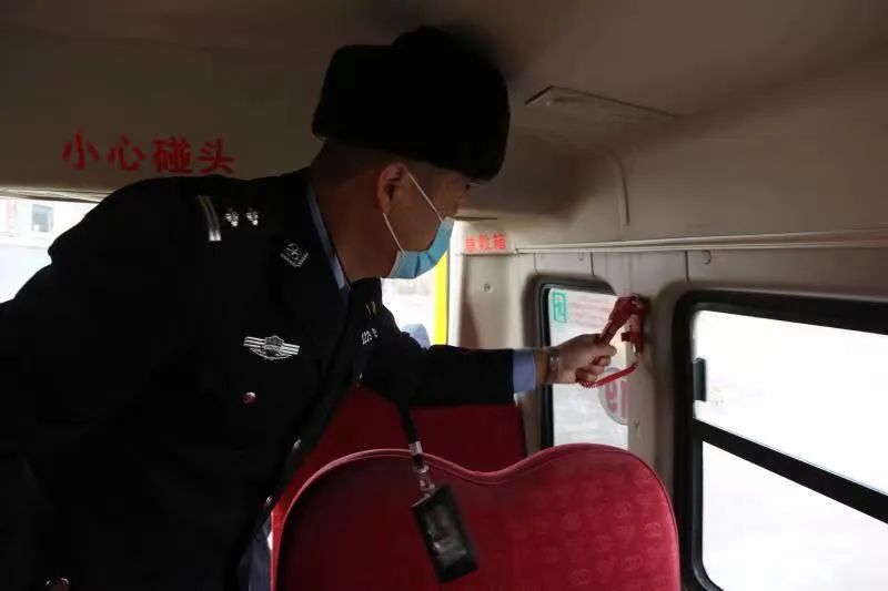 在校車安全大檢查中,交通、交警聯(lián)合執(zhí)法人員對校車進(jìn)行了安全檢查,核對相應(yīng)手續(xù)是否齊全、是否符合安全運(yùn)行條件,檢查車輛維護(hù)保養(yǎng)等情況,并叮囑駕駛?cè)艘?jǐn)慎駕駛,時刻把安全放在第一位。整改胎花較淺,應(yīng)急藥品不全等隱患兩項。