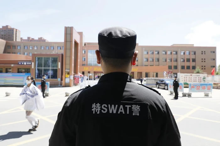 考試期間,各警種密切配合、協同作戰,各安保警力警容嚴整、履職盡責,文明執勤、熱情服務。在各考點及周邊科學部署警力,設立警戒線,維護考點秩序,確保考生及送考老師、家長安全。強化考點及周邊巡邏管控,對可能影響考生的生活噪音、各種干擾進行處置,為考生創造安全、肅靜、祥和的考試環境。交警部門在各考點及附近路段設置禁鳴、禁停、限速、警戒線、禁止通行和繞行等醒目交通標志,對車輛進行交通管制,加強周邊道路交通疏通,確保考點及城區道路交通安全暢通。巡特警部門加強考點及周邊巡邏防控,強化顯性用警,壓降案件,確保平安。戶政管理部門在各考點設立臨時身份證辦理點,為考生提供優質、高效、便捷的戶籍服務,確保丟失或忘帶身份證考生隨到隨辦臨時身份證明,解除考生的后顧之憂。反詐中心在考生入場后,向陪考家長宣傳防詐、反詐知識,增強考生家長識騙、防騙意識,營造“人人識詐、全民防騙”的濃厚氛圍。