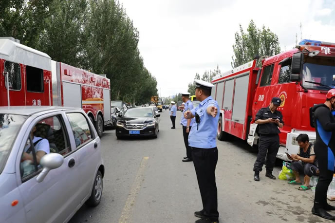 搶險救援中,巡特警大隊充分發(fā)揚骨干先鋒作用,快速反應、迅速集結,多次冒險通過涉水路段,第一時間趕赴搶險救援現場,解救被困群眾,疏導滯留車輛,轉移群眾財產。交警大隊密切關注天氣變化,加強危險地段警戒,及時設置遠端管控點,對車輛和人員進行分流處置,向社會公布道路交通狀況和行車路線,確保救援車輛順暢通行。派出所全面疏散、轉移群眾,及時排查險情,清除安全隱患,加強受災區(qū)域巡邏,切實維護人民群眾生命財產安全。