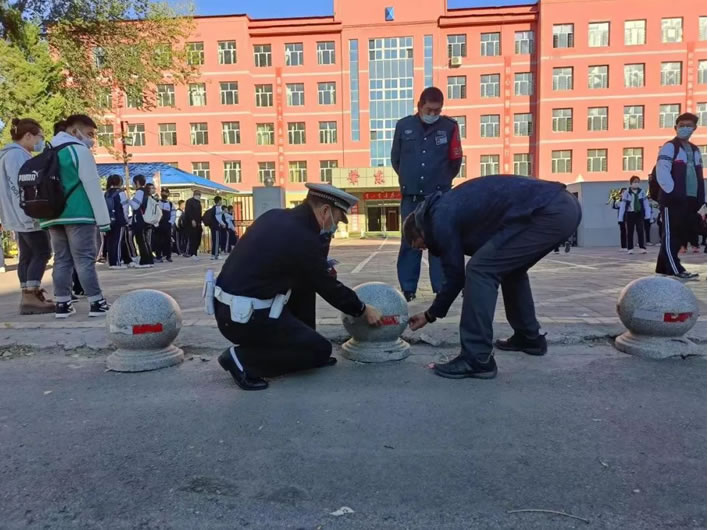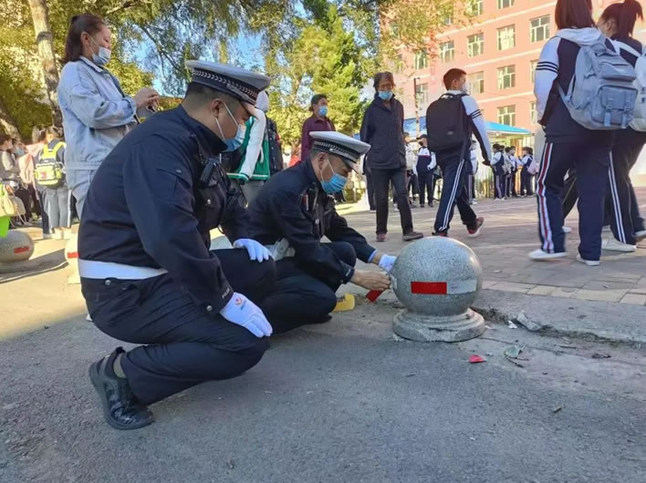 交警大隊提前部署護校安園工作,深化校園及周邊交通安全隱患排查整治工作,重點檢查交通標志標線、交通設施設備是否齊全規范,及時消除潛在的安全隱患,確保校園周邊的標志標線清晰,為廣大師生創造安全、有序的出行環境。