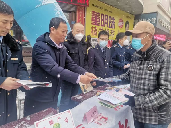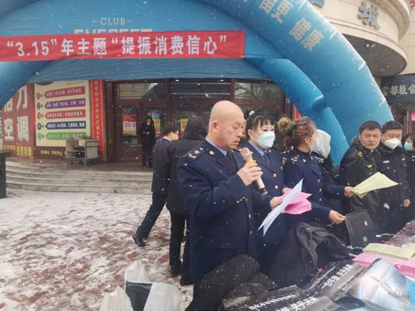 瑞雪飄飄,在我國第41個消費者維權日來臨之際,肇東市市場監督管理局為更好地提振全市廣大消費者的消費意識,增強消費信心,維護好消費者的知情權、公平交易權、監督權,組織開展了主題為“提振消費信心”的集中宣傳活動。