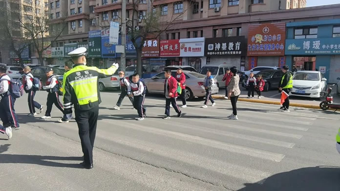 為深入推進(jìn)道路交通安全整治年工作,確保學(xué)生出行安全,綏化市公安局交通警察支隊肇東大隊持續(xù)推進(jìn)護(hù)學(xué)行動,充分發(fā)揮“護(hù)學(xué)崗”“高峰勤務(wù)”等護(hù)學(xué)機(jī)制作用,積極推廣“校家警”護(hù)學(xué)模式,以民輔警為主,交通志愿者為輔,學(xué)校教職員工、學(xué)生家長聯(lián)動,共同維護(hù)校園周邊交通安全秩序。