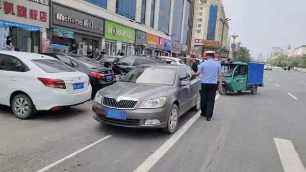行動(dòng)中,執(zhí)勤民輔警按照“宣傳在先,處罰在后”原則,對(duì)車流、人流聚集的商業(yè)街,以及主干道道路違法停車行為突出的道路,實(shí)施高頻度、高密度的滾動(dòng)整治。對(duì)短暫停車行為,駕駛員未下車的以教育勸離為主,引導(dǎo)將車輛規(guī)范停放到指定區(qū)域;對(duì)無視交通法規(guī),在機(jī)動(dòng)車道、人行道、非機(jī)動(dòng)車道的違停車輛,現(xiàn)場(chǎng)拍照粘貼違法停車告知單,對(duì)違規(guī)車輛進(jìn)行處罰;對(duì)阻礙交通通行能力,造成安全隱患的,堅(jiān)決予以拖離;對(duì)長期占道的“僵尸車”,聯(lián)系車主督促其及時(shí)進(jìn)行處理或主動(dòng)將車開走,無法聯(lián)系到車主的或電話告知仍未處理的,統(tǒng)一將其拖離現(xiàn)場(chǎng)。