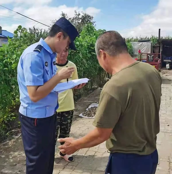 工作中,民警對(duì)轄區(qū)群眾進(jìn)行防汛知識(shí)宣講工作,采用“線上+線下”相結(jié)合的方式,通過(guò)工作微信群將汛期動(dòng)態(tài)、預(yù)警等信息及時(shí)通告;“線下”通過(guò)入戶走訪積極開(kāi)展宣傳,向群眾講解安全避險(xiǎn)、自救等相關(guān)知識(shí),并用巡邏車定點(diǎn)巡邏,確保轄區(qū)群眾能夠穩(wěn)定應(yīng)對(duì)臺(tái)風(fēng)汛情。