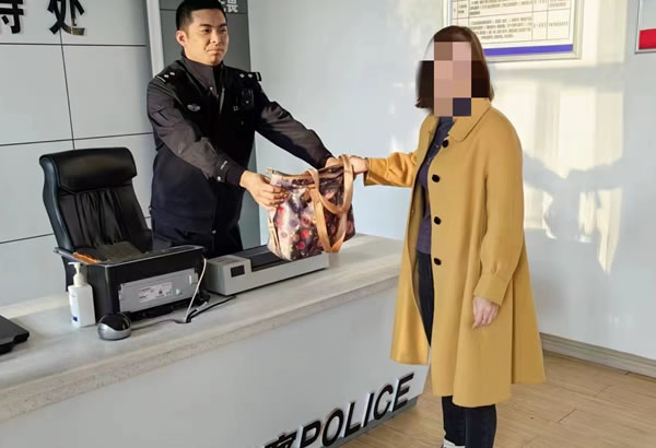 接到警情后,民警王宇峰、史林火速趕往現場,到達復印社后發現桌子上放著一個花格的布兜,民警現場清點發現包內有身份證、銀行卡及5萬余元現金!笆е鬟z失了大額現金肯定很著急!泵窬⒓撮_展查找失主工作,經過約兩小時的細致查找,民警找到失主李女士,當李女士聽到布兜找到后急匆匆趕到派出所,民警核對了其身份信息并與失主確認了包內物品無誤后,將布兜還給了失主。經過民警短暫交流得知,李女士的親戚近日突發疾病住院,需要大量現金做手術。李女士心急如焚,在附近的銀行取完現金后,便想著趕緊將錢送到醫院。由于李女士當時手里拿的東西較多,中途到復印社打印治病所需材料時,在慌亂之中,將裝有現金的布兜遺忘在復印社,一直到醫院時才發現裝有5萬元現金的布兜不見了。本以為過了這么長時間了,可能尋找無望,沒想到肇東警察把包給找了回來。李女士滿懷感激地表達了謝意,當場從包內拿出現金就要感謝派出所民警,被民警婉言拒絕了,表示幫助群眾是警察份內的工作,同時提醒其今后要妥善保管好隨身財物。