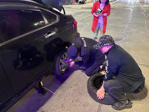 巡邏民警在接到女士的求助后迅速開展工作,他們首先安撫了群眾的情緒,并迅速評(píng)估了現(xiàn)場情況。在確認(rèn)安全無誤后,民警展開了更換備胎的工作。在整個(gè)過程中,民警還向群眾傳授了一些基本的車輛維護(hù)知識(shí),比如如何檢查輪胎氣壓、如何識(shí)別備胎是否適合當(dāng)前車輛以及如何正確使用千斤頂。在備胎安裝完畢后,民警還仔細(xì)檢查了新車胎的氣壓,確保其符合標(biāo)準(zhǔn)。他們還提醒群眾,由于備胎通常是應(yīng)急使用,其性能可能不如原廠輪胎,因此建議盡快到專業(yè)的汽車修理店進(jìn)行檢查和更換。