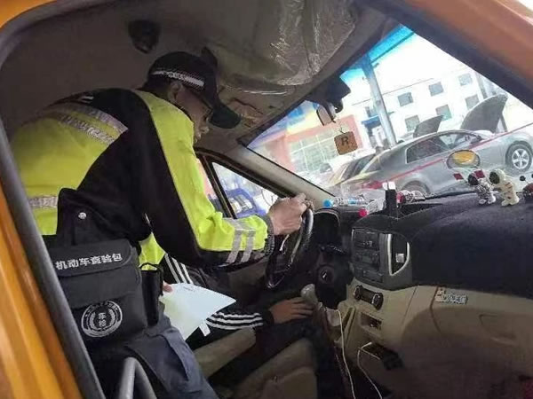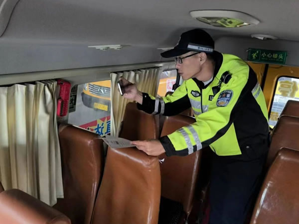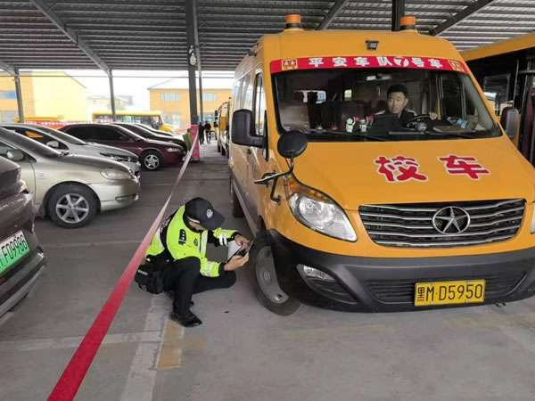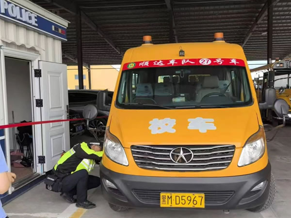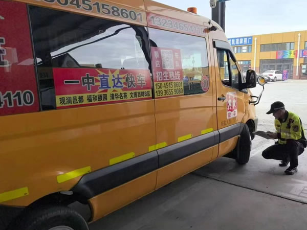 查驗過程中,民警對校車標志、滅火器、安全帶、安全錘、緊急逃生門、車輛燈光、停車指示牌、車輛年檢及保險、輪胎的安全性能及校車技術狀況、安全駕駛情況以及校車安全管理措施落實情況等方面進行安全大檢查。同時認真核對了校車駕駛人的駕駛資質,聽取了校車負責人對校車出行方式、安全隱患排查整治、企業主體責任落實情況介紹,并要求校車駕駛人要自覺遵守交通法規,安全行駛、平安出行。