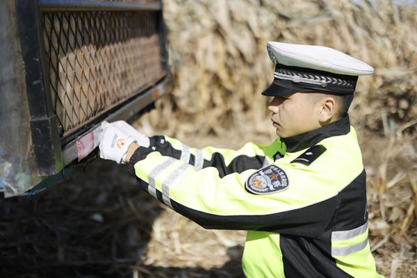 在鄉間路上和金黃色的田地里,交警積極開展“亮尾工程”,為農用車輛免費粘貼反光標識,并囑咐農用車司機反光標識的最大意義是“被看見才安全”同時向農民群眾普及相關的交通道路安全知識。