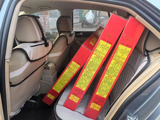 2025年1月20日13時許,民警在肇東市區(qū)發(fā)現(xiàn)違法行為人張某某意圖駕駛嫌疑車輛將煙花爆竹“送貨上門”,遂立即對其進行抓捕,當場查獲20余箱煙花爆竹。經(jīng)查,張某某為謀取個人利益,在明知無證銷售煙花爆竹屬于違法犯罪行為的情況下,仍對外銷售煙花爆竹。據(jù)張某某交代,雖明知沒有煙花爆竹經(jīng)營許可證、道路運輸許可證,但還是心存僥幸,通過微信朋友圈兜售煙花爆竹,在確認銷售訂單后自行駕車到六道街購買后在市區(qū)內(nèi)銷售,沒想到剛準備“送貨”便被民警查獲。