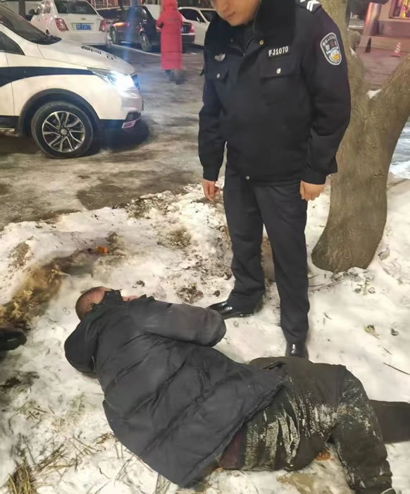 2025年2月9日20時10分許,肇東市公安局西城派出所接到110指揮中心指令,有居民劉女士報警稱,在肇東市中國人壽門前步行路上有一男子倒地不起,已有一個多小時之久。西城派出所民警接到警情后立即趕到現場。當晚零下20多度,該男子躺在地上胡言亂語,處于醉酒狀態,意識不清。