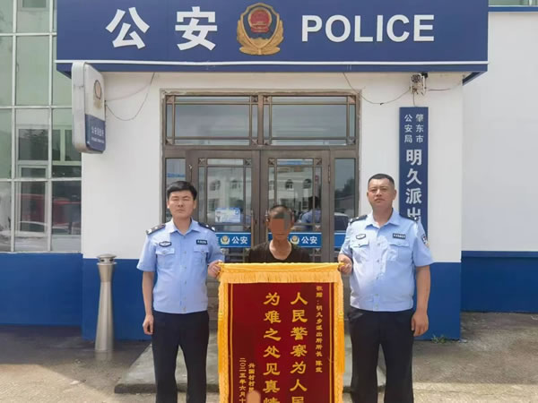 看到孫子平安歸來,紀先生眼含淚花不停地向民警道謝:“感謝警察同志幫我找回孩子,謝謝你們,謝謝你們!”6月15日,紀先生專門將一面印有“人民警察為人民,為難之處見真情”的錦旗送到明久鄉(xiāng)派出所,表達對民警的感激之情。