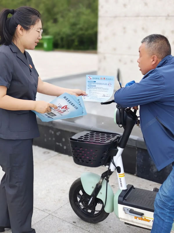 “大娘,請(qǐng)您看一下這個(gè)宣傳單,今天我們給大家做一個(gè)防范非法集資的普法活動(dòng),通俗來講就是教你們?cè)趺床槐或_......”