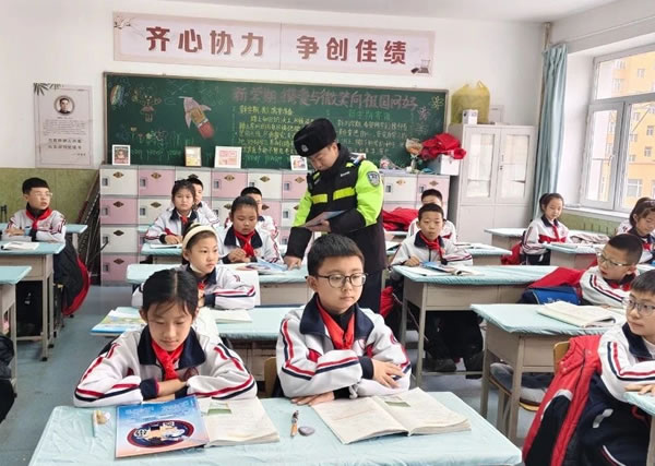 在中小學校門口及課堂上,宣傳民警通過講解實際交通事故案例等方式向同學們和家長普及交通安全法律法規知識,以及如何安全行車等內容。并著重講解了安全乘車出行、過馬路、“一盔一帶”等安全知識,以及常見交通標志、交通手勢認知等基本安全常識,讓學生認識交通安全的重要性,使每位同學都時刻遵守交通法規,增強安全防范意識,提高自我保護能力,養成良好的交通出行習慣。
