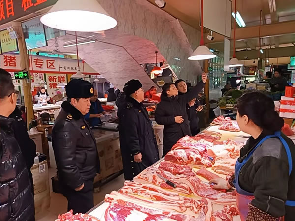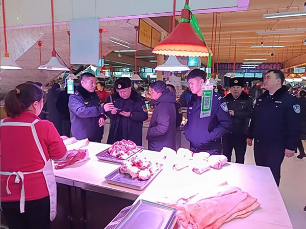 元旦佳節將至,為確保我市群眾采購安全健康的農產品,肇東市農業農村局執法大隊與肇東市公安局食藥環偵大隊、肇東市市場監督管理局三部門,共同對肇東市陽光農貿大廳以及部分肉類商店進行了農產品質量安全大檢查,全力守護人民群眾“舌尖上的安全”。" />