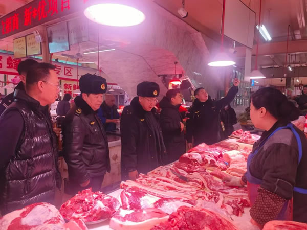 元旦佳節將至,為切實保障廣大市民節日期間飲食安全,營造放心、有序的市場消費環境,12 月 30 日,肇東市市場監督管理局黨組成員 副局長孫汝鑫帶領食品安全相關股室及陽光農貿市場監管分局負責人,聯合市公安局、農業農村局等相關部門執法人" />