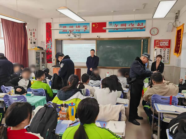 行動中,民輔警秉持全覆蓋、無死角、零容忍原則,分組對教室、課桌、儲物柜、書包及校園公共區域開展拉網式排查,重點收繳管制刀具、尖銳利器、易燃易爆等違禁物品,逐區域、逐物品細致核查,堅決消除安全隱患。同步結合典型案例,向師生宣講《治安管理處罰法》《管制刀具認定標準》等法律法規,講解非法攜帶管制刀具的危害性與法律后果,引導學生自覺遠離違禁物品、主動舉報安全線索,提升學生們的法治意識與自我保護能力。