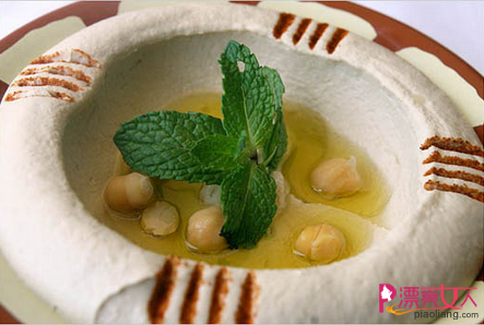 食材:鷹嘴豆 150 克、小蘇打 1/2 茶匙、水 500ml、芝麻醬 90 克、鮮檸檬汁 30ml、大蒜 2 個、鹽、優質橄欖油(選用)