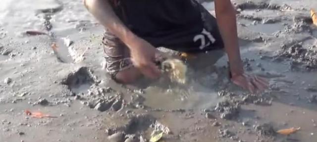 有幾名男孩就在退潮后去海灘上趕海時(shí),在泥潭上發(fā)現(xiàn)兩個(gè)洞,一個(gè)大的一個(gè)小的,現(xiàn)象著實(shí)奇特。 為了一探究竟,其中一位男孩把手伸進(jìn)了大洞里,令人驚奇的是,旁邊的小洞竟冒出了高高的水柱!