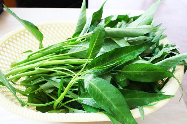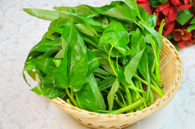 空心菜又名蕹菜、無心菜、竹葉菜, 春、夏季采取其莖葉鮮用, 具有很高的食用價值及藥用價值。空心菜在我國有著悠久的栽培歷史, 早在殷商時代, 人們就將這種野生植物栽培為蔬菜了, 《本草綱目拾遺》記載:“解毒熟食之, 亦可先搗服” , 說明人們在很早就已經知道其藥用價值, 時至今日, 空心菜已是老百姓日常生活中最喜愛吃的蔬菜之一。這個季節又到了吃空心菜的最好時候了,葉子鮮嫩爽口,這時候不吃真是有點兒可惜!