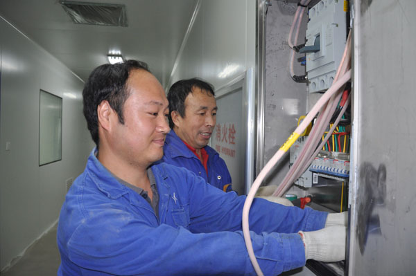 圖為工人正在綠色食品產業大園區進行電力配電箱線路安裝。霍永祥 特約記者 車彥旭 攝