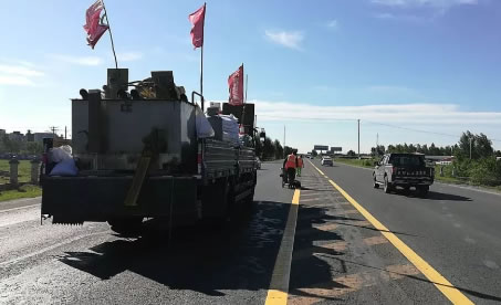 近日,交通運輸局組織養護人員施劃國道綏滿公路哈肇段路面交通標線,消除行車安全隱患。