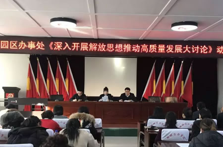 會議宣讀了《西園區(qū)辦事處開展“解放思想推動高質(zhì)量發(fā)展大討論”活動實施方案》,明確了開展“大討論”的指導思想、討論內(nèi)容、方法步驟安排和具體要求。