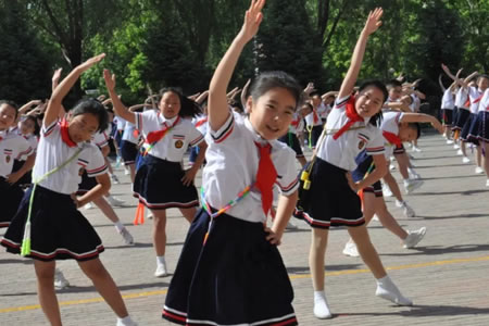 “跳繩”是該校體育工作的一大特色,做到了人人有跳繩,個個有花樣、班班有特色。由于此項運動不受年齡限制,是一項強健心臟、有益增高的運動,又能鍛煉學生的彈跳力、節奏感和協調性,非常受學生們歡迎。有長繩和短繩,有速度跳和花樣跳,有單人跳和多人跳,多人集體跳繩等形式,既讓孩子們在跳繩中,展示自我、愉悅身心、享受童年的朝氣蓬勃,更進一步增強了學生集體榮譽感及培養出合作精神。