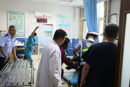 “快,坐上車,跟我們走,我們護送你們去醫院”。一路上,從肇四路高速南橋到市人民醫院,通過警車帶路,警燈警示,及時繞過車多擁堵路段,僅僅5分鐘就到達醫院急診室。于達和隊員幫助家屬將病人從車內抬到急診室。由于病人家屬來不及停放車輛,民警將其駛停于醫院停車點,避免車輛阻礙交通。
