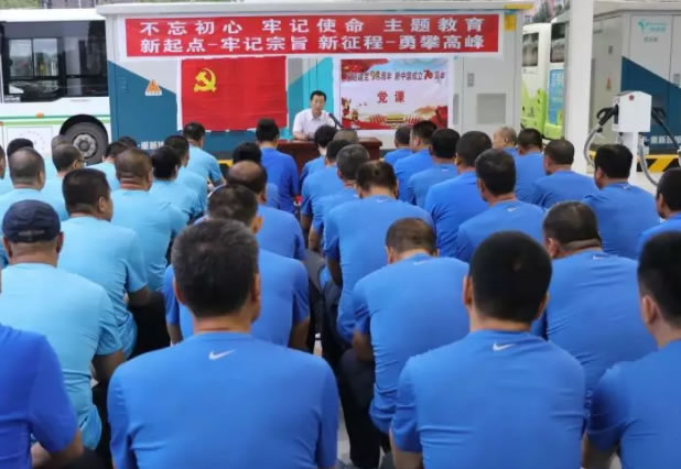為進一步深入學習貫徹黨的十九大精神和習近平總書記重要講話和重要指示精神,按照市委和市交通運輸黨組的統一部署,公汽公司黨支部在新落成的公交新能源充電站舉辦了“不忘初心 牢記使命”主題教育活動,喜迎建黨98周年,為新中國成立70周年獻禮。公司黨支部書記楊維旭以“新起點—牢記使命 新征程—勇攀高峰”為題,為公司全體黨員及優勝員工講了一堂專題黨課。