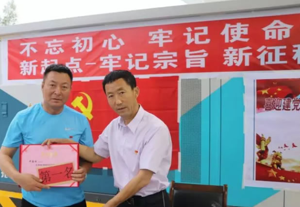 活動中,公司經理、黨支部書記楊維旭為2018——2019年度績效考核勞動競賽中榮獲線路第一名和第二名的優勝員工頒發了榮譽證書和獎金。