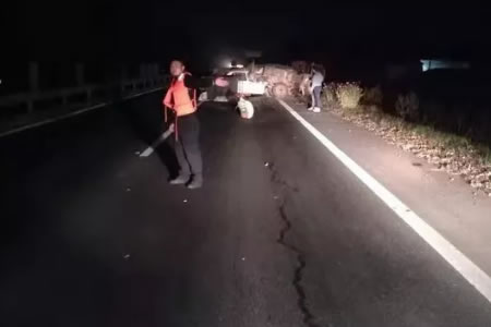 發現情況后,兩位民警立即下車進行現場處置。由于事發突然,轎車駕駛員傷情不明,大隊長孫衍銘當機立斷一面聯系救助傷員,組織交通事故處置;一面提醒圍觀群眾避讓來往車輛。由于肇事車輛損壞嚴重造成周邊視線不好路況復雜,并且事故現場占據了大部分行車路面,來往車輛無法及時發現避讓。為了避免二次事故發生,孫衍銘、楊蒙不顧個人安危,在沒有更好的警示設備情況下,急中生智穿著顏色醒目的救生衣,用身體充當反光標志物;及時預警來往車輛,提示駕駛員提前采取制動避讓措施,確保車輛安全通過事故區域。